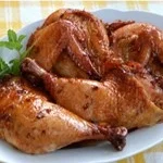 - Bake chicken uncovered in the preheated oven for 1 hour, basting frequently. Test for doneness, making sure there is no pink left in the meat. Let cool slightly, then cut into smaller pieces to serve.